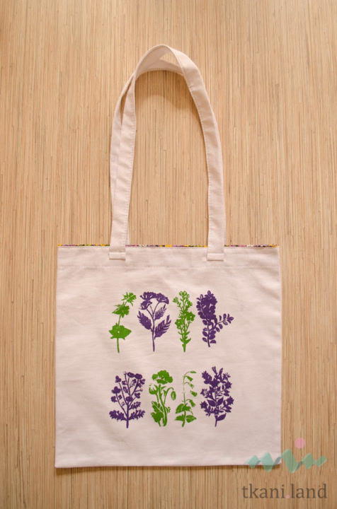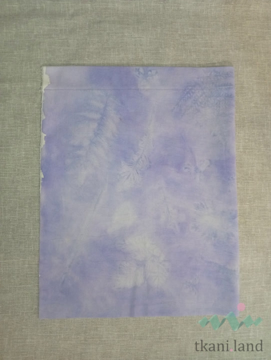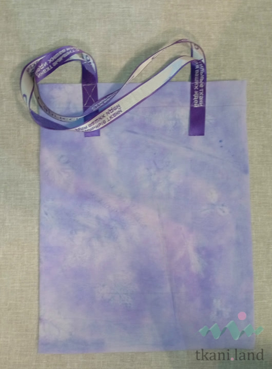 Рассмотрим вариант изготовления из заранее декорированной методом цианотипии материи. Потребуется кусок ткани шириной 80-86 см. и длиной 60-64 см. Ручки для сумки можно выполнить из стропы, широкой репсовой ленты, подходящей тканой тесьмы или сшить из основной ткани. Потребуются нитки в тон ткани, ножницы для раскроя, булавки, портновский мел или исчезающий маркер для ткани, швейная машинка, утюг.