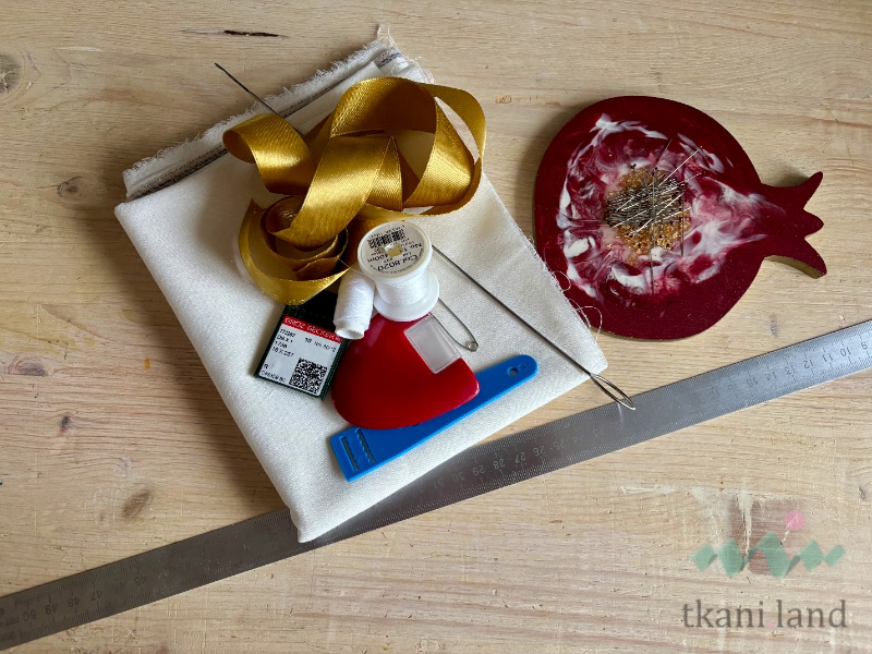 Чтобы сшить мешочек, нам нужны швейная машинка с функцией прямой строчки, нитки, иглы, портновские булавки. Для раскроя подготовим ножницы, мел, линейку. На оверлоке будем обрабатывать срезы. Влажно-тепловую обработку проведем утюгом или парогенератором на гладильной доске, охладит швы и впитает лишнюю влагу портновский утюжок. Специальным крючком вывернем рулик, если завязки делаем сами. Для экономии времени можем взять атласную или репсовую ленту. Английская булавка или инструмент для вдевания резинки помогут ее вставить.