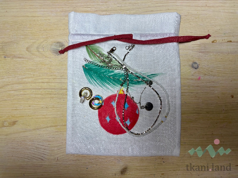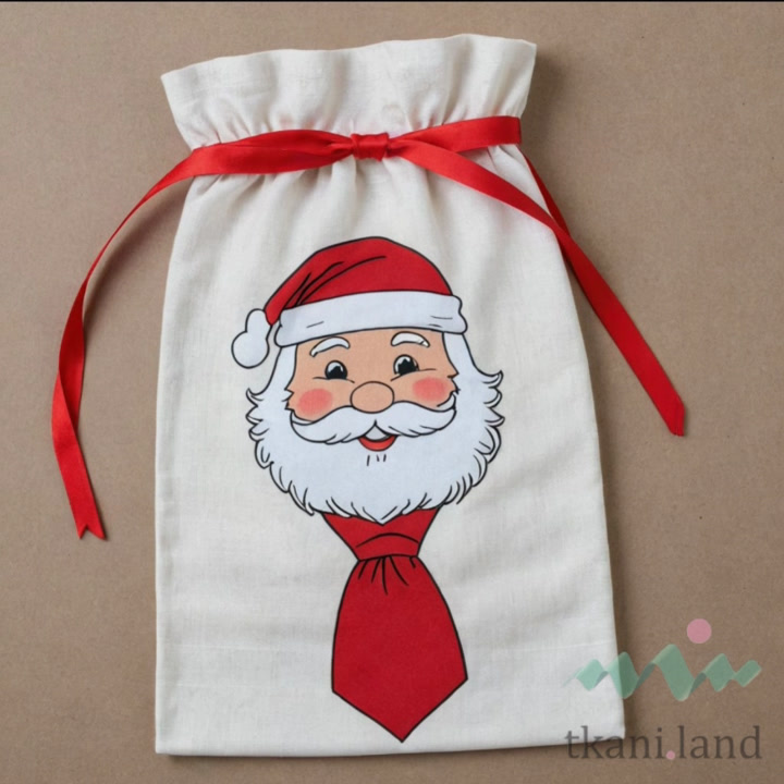 Теперь можно задуматься о декоре. Мешочки для новогодних сувениров можно украсить, например, приклеив термотрансфер с изображением деда мороза.