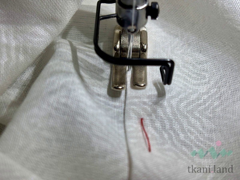 Прокладываем строчку на расстоянии 1 мм от подогнутого края. У нас получилась подгибка с закрытым срезом.