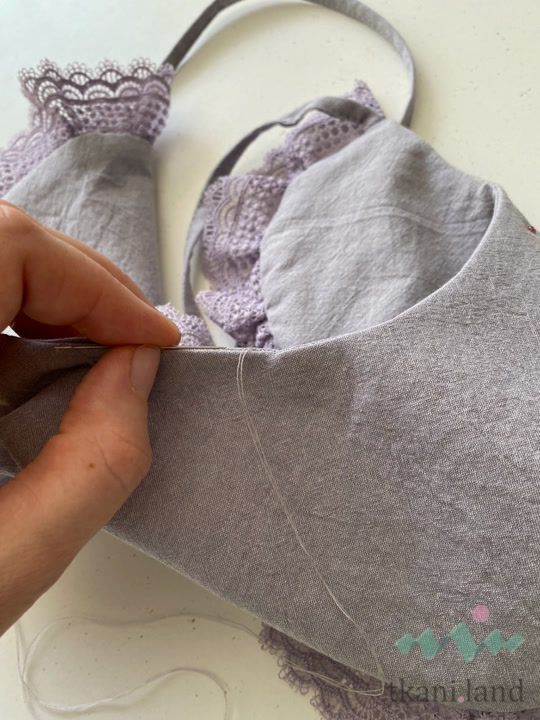 - Притачиваем завязки также с отступом от края.