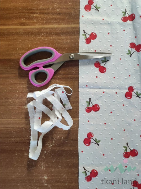 Самая широкая часть повязки располагается вдоль направления долевой нити или кромки ткани. Такое расположение позволит сохранить головной убор в первоначальном виде, который не будет растягиваться.