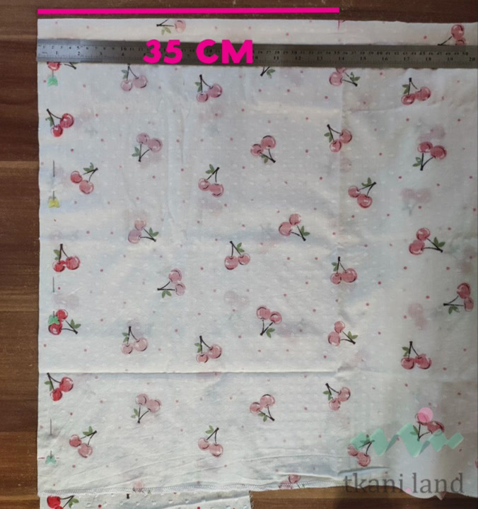 Вдоль сгиба наметьте высоту в 35 см вправо от среза.