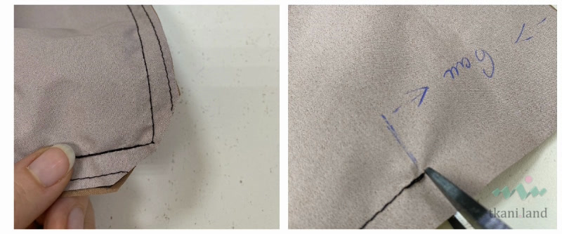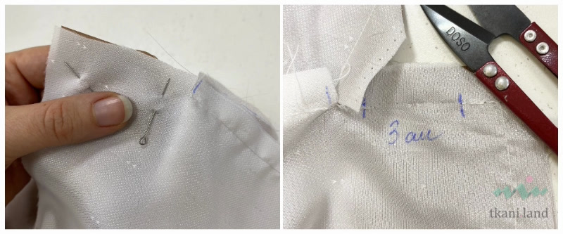 Высекаем припуски в уголках, а в верхней части надсекаем до строчки (не доходя 1 мм).