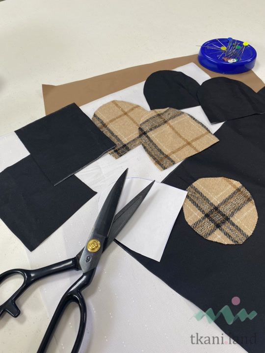 Начнем пошив с декоративной части. Все элементы будут располагаться на дополнительной детали, которую мы кроили в размерах 19 на 35 см.