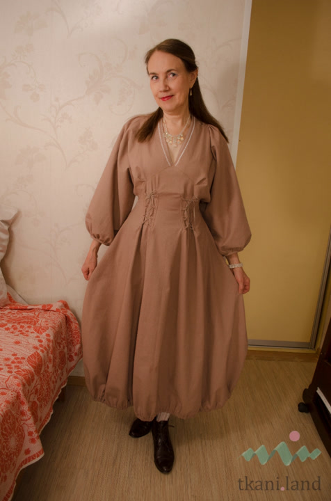Таким интересным путем, сочетая традиционные методы конструирования с методом наколки (муляжным методом) , можно получить прекрасное платье-баллон - с некоторыми отсылками к историзму и фольклору. Не бойтесь экспериментировать, пробовать, учиться новому и у вас все получится! Прекрасного творчества и уютной осени!