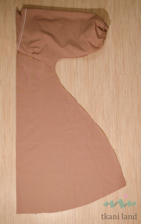 Осталось пришить рулик по линии низа рукава и собрать нижний срез на резинку.