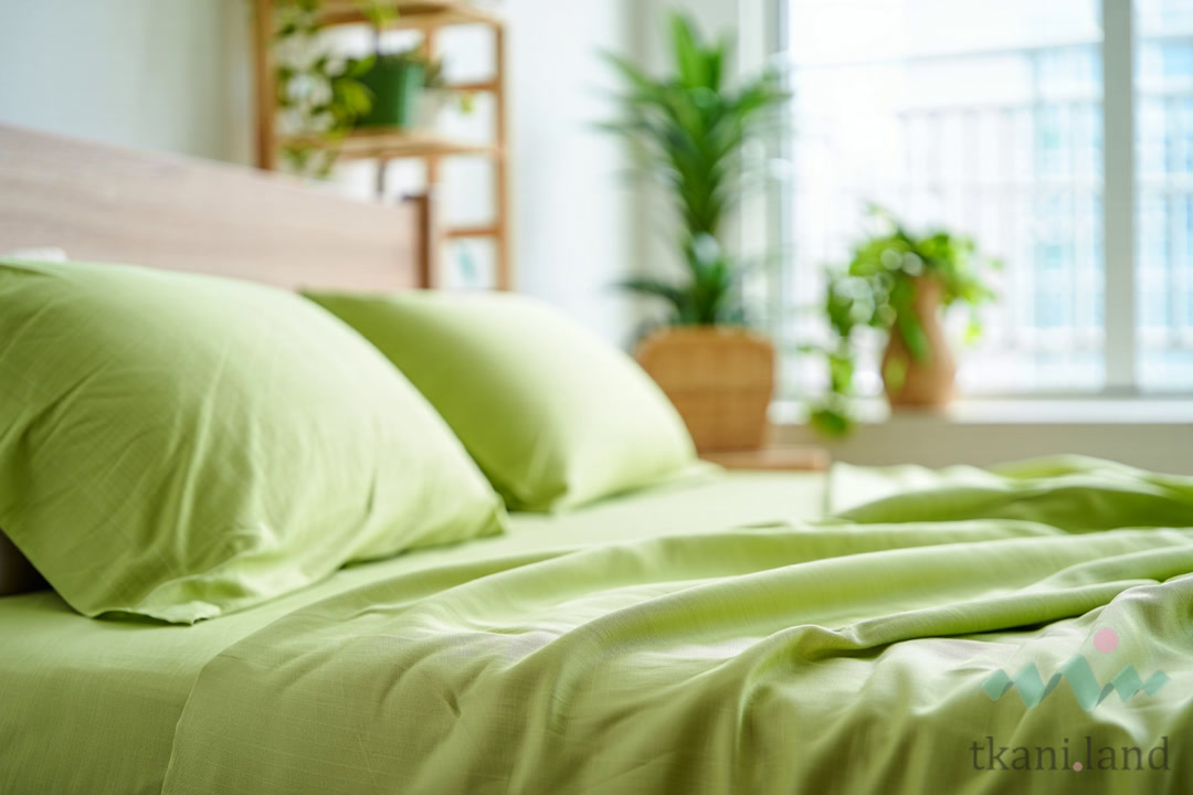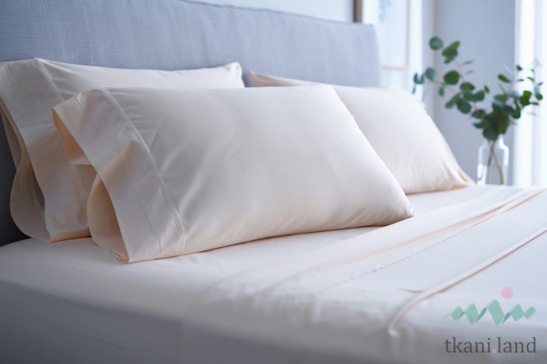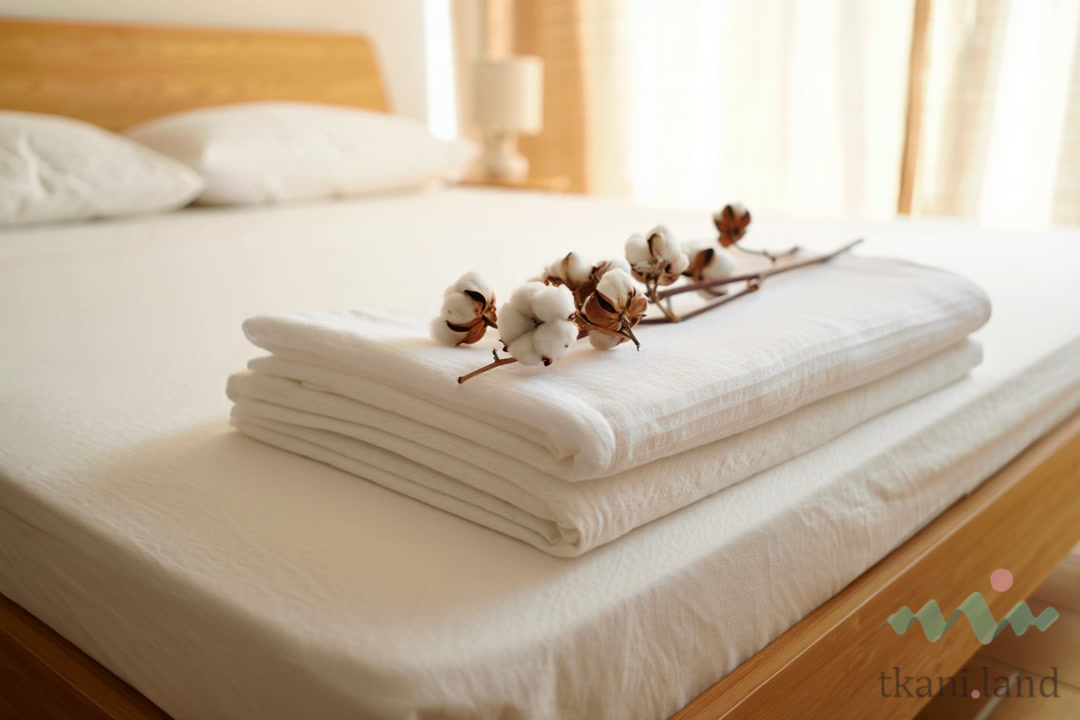Среди хлопковых тканей для постельного белья лидируют перкаль (TC 200–400) и сатин (TC 300–600). Перкаль с показателем TC 400 и выше считается премиальным. Египетский хлопок с длинным волокном позволяет получить очень тонкую нить и высокую плотность переплетения — такое полотно служит десятилетиями.