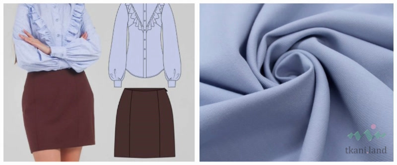 Ее можно сшить из костюмной ткани «пикачу», которая представлена однотонными полотнами популярных оттенков. Или из костюмной ткани в клетку.