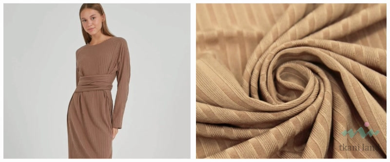 Вязаное полотно в рубчик из каталога «Ткани лэнд» отлично подойдет для пошива такого платья.