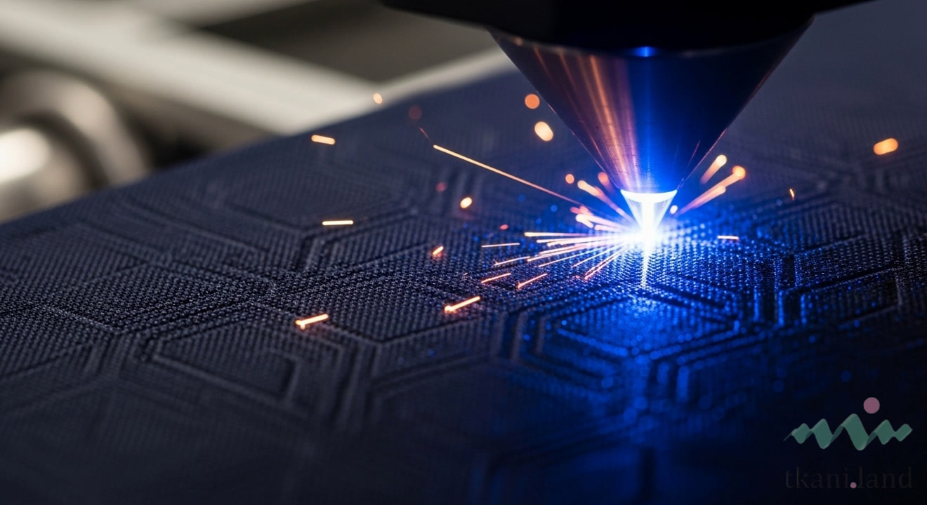 Современная технология создания ажура на ткани. С помощью лазера на полотне вырезаются декоративные отверстия с чёткими контурами. Лазер запечатывает обрезанные края, предотвращая осыпание. Техника применяется для создания сложных узоров на различных материалах.
