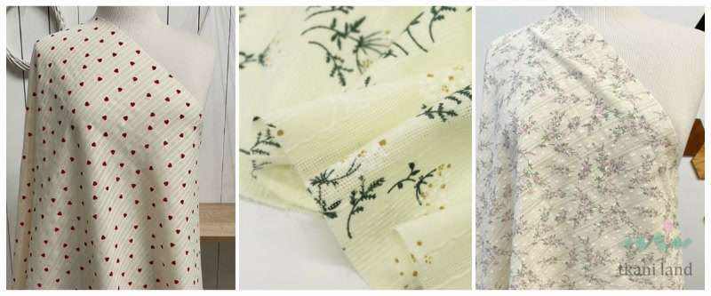 И ткани с рисунком (мелкий принт в виде веточек, сердечек или цветочков) плотностью 95-125 гр на метр. В составе обоих видов 100% хлопка.