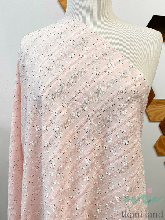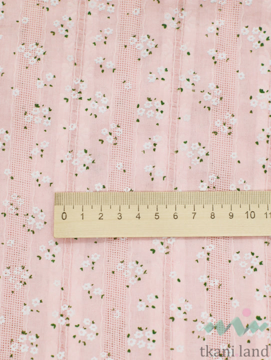 Ажурный хлопок (батист) «Белые цветочки» на светло-розовом (2)