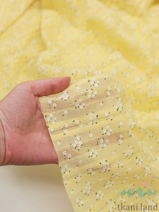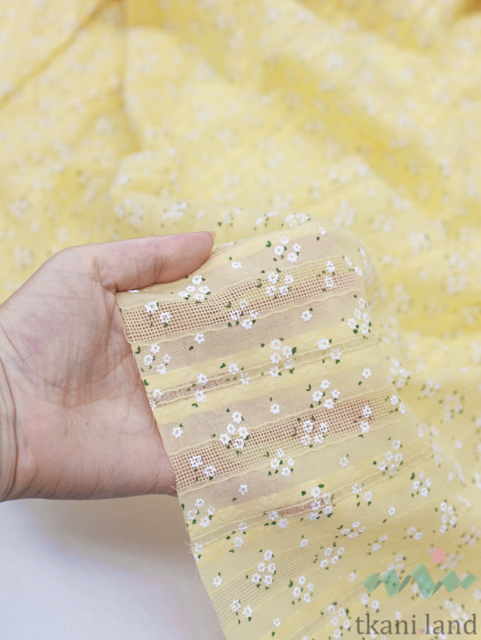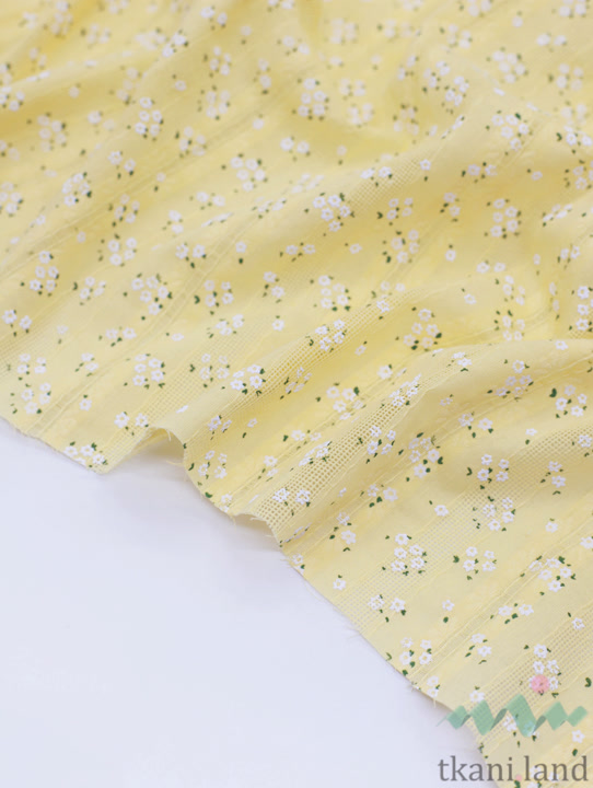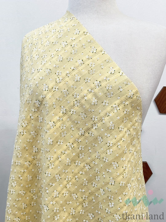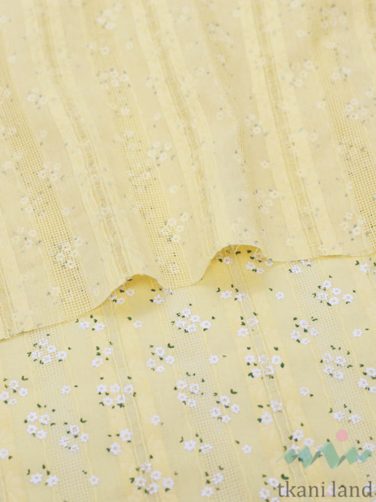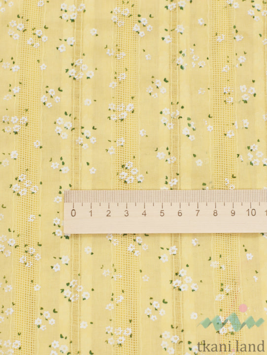 Ажурный хлопок (батист) «Белые цветочки» на желтом (5)