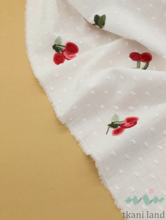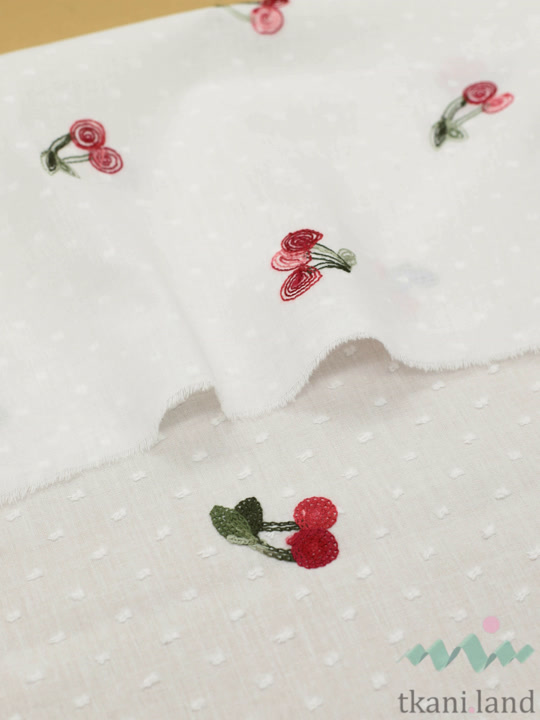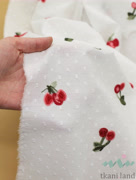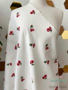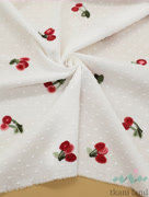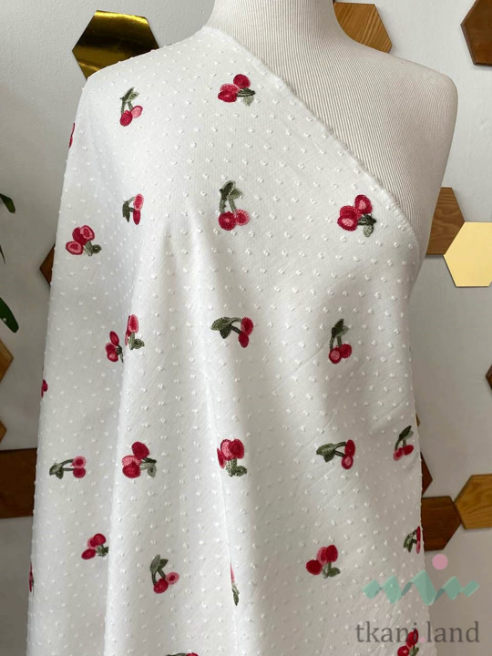 Батист с мушками «Вышитые ягодки на теплом белом»