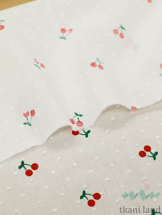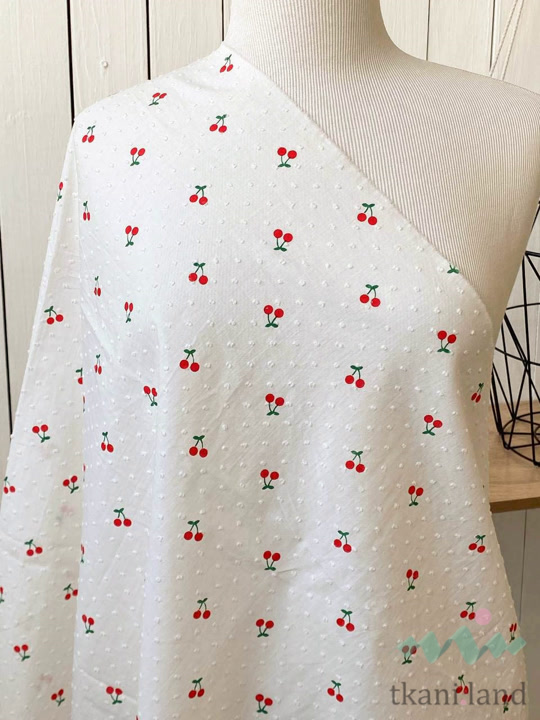 Батист c мушками «Красные ягодки на белом»