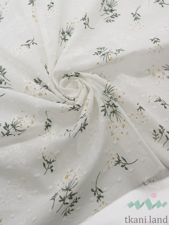 Легкий батист с мушками «Полевые цветы на белом»