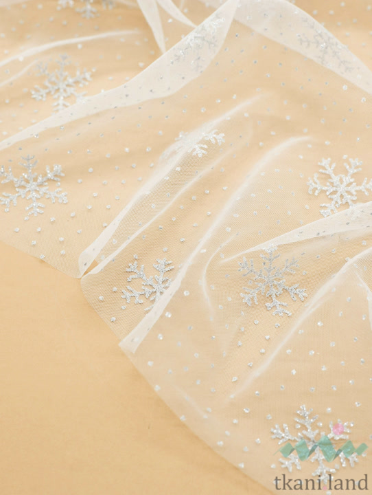 Фатин снежинки на белом