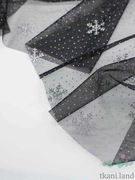 Фатин снежинки на черном
