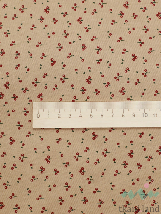 Теплый хлопок «Маленькие ягодки на бежевом»