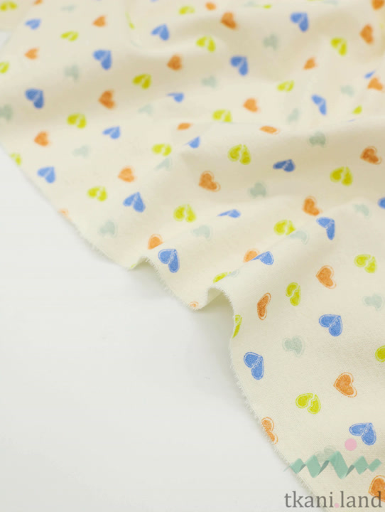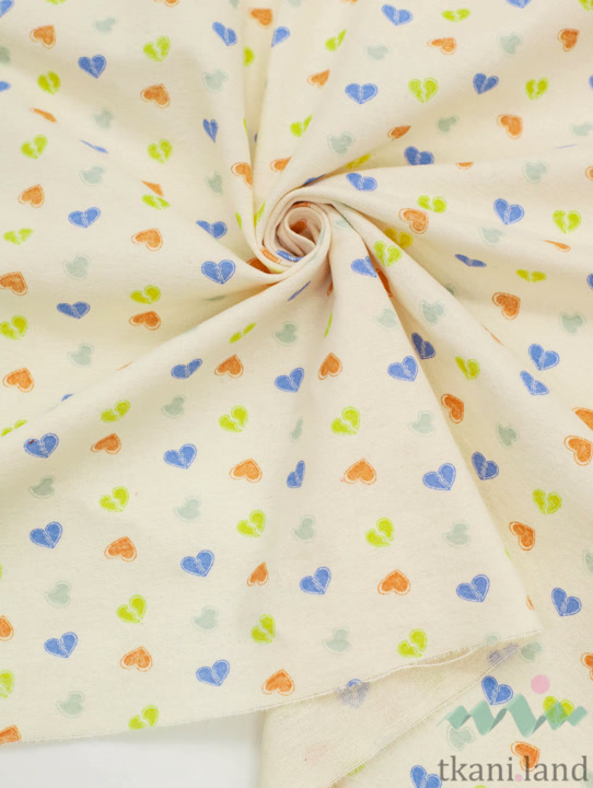 Фланель «Разноцветные сердечки на бежевом»