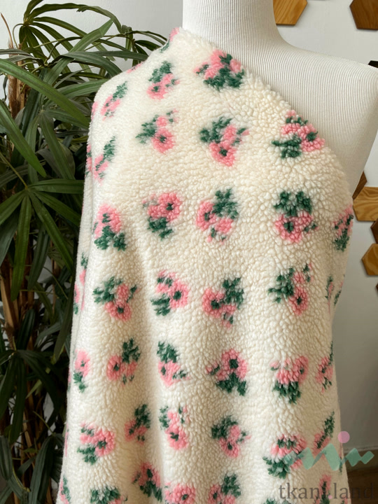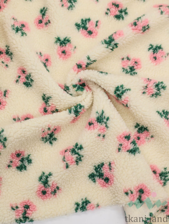 Шерпа «Розовые цветы с листиками на белом» (1)