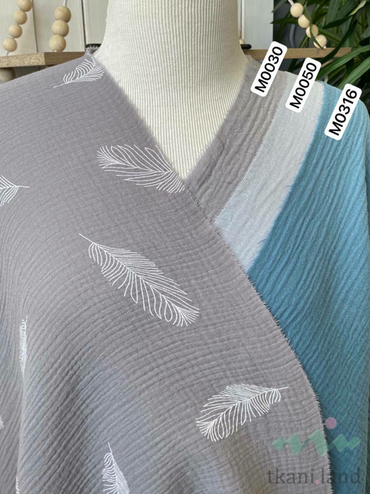 Муслин двухслойный «Перья на сером»