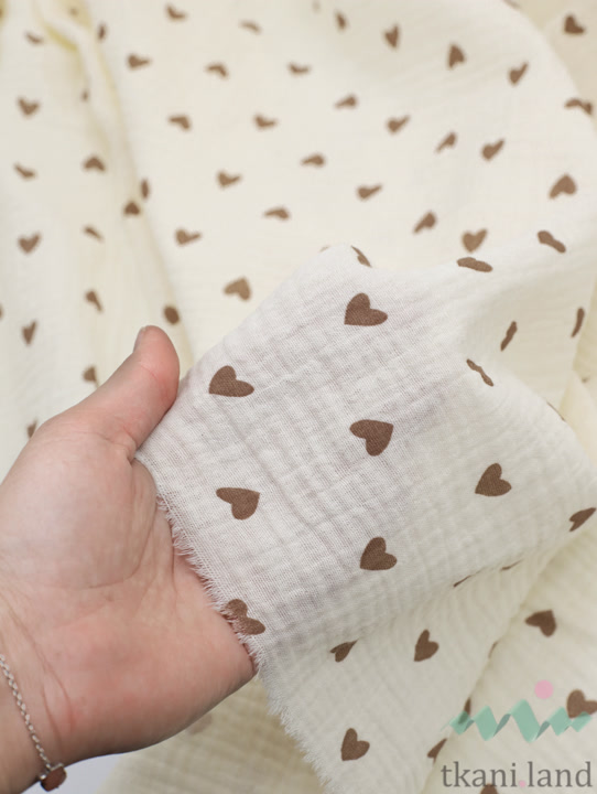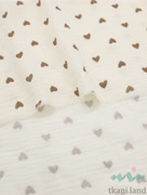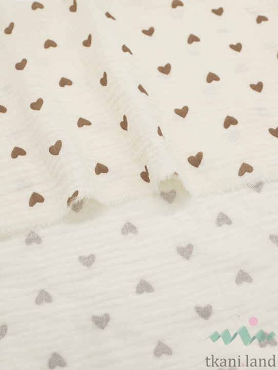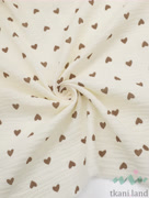 Муслин двухслойный «Бежевые сердечки на молочном»