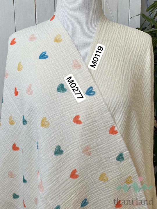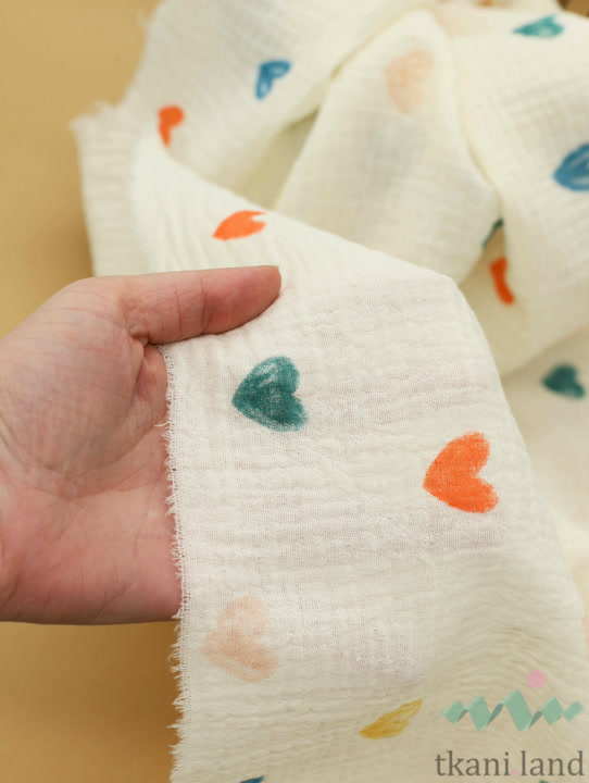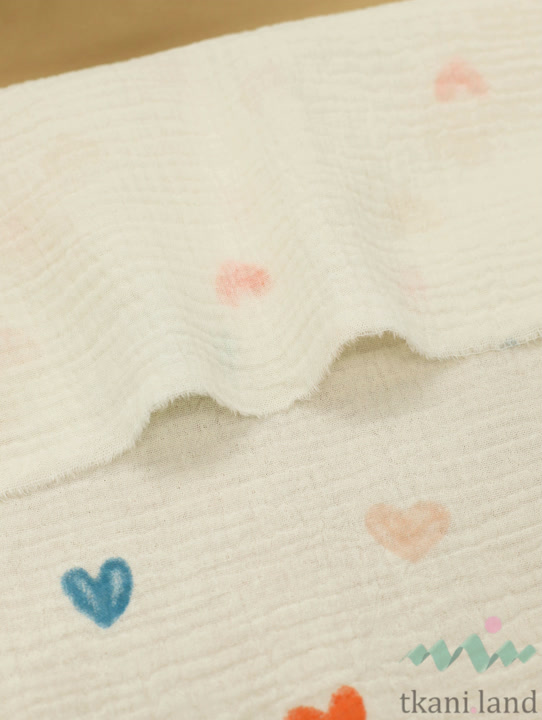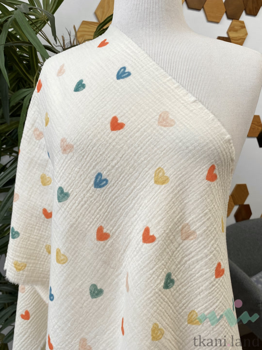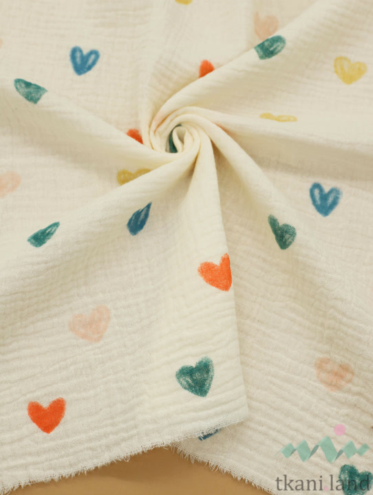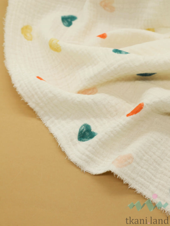 Муслин двухслойный «Разноцветные сердечки на молочном»