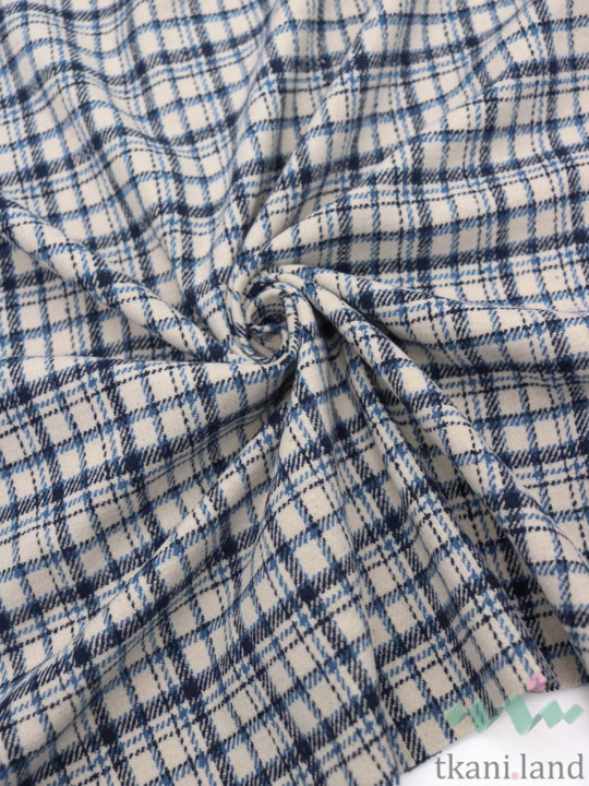 Ткань костюмно-пальтовая клетка молочная с синим "Брайтон" (2)