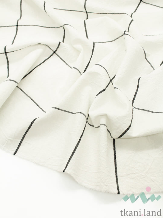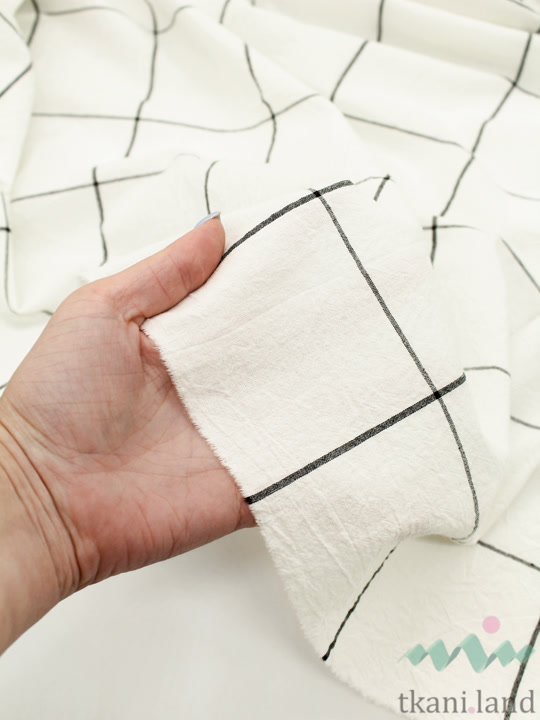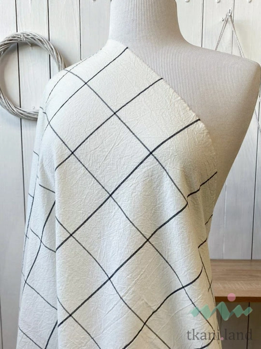 Вареный (стираный) хлопок «Крупная клетка на тепло-белом»
