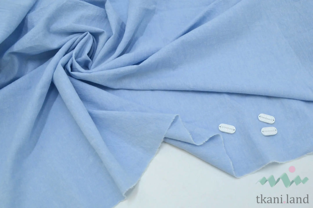 Вареный (стираный) хлопок Небесный с эффектом крэш