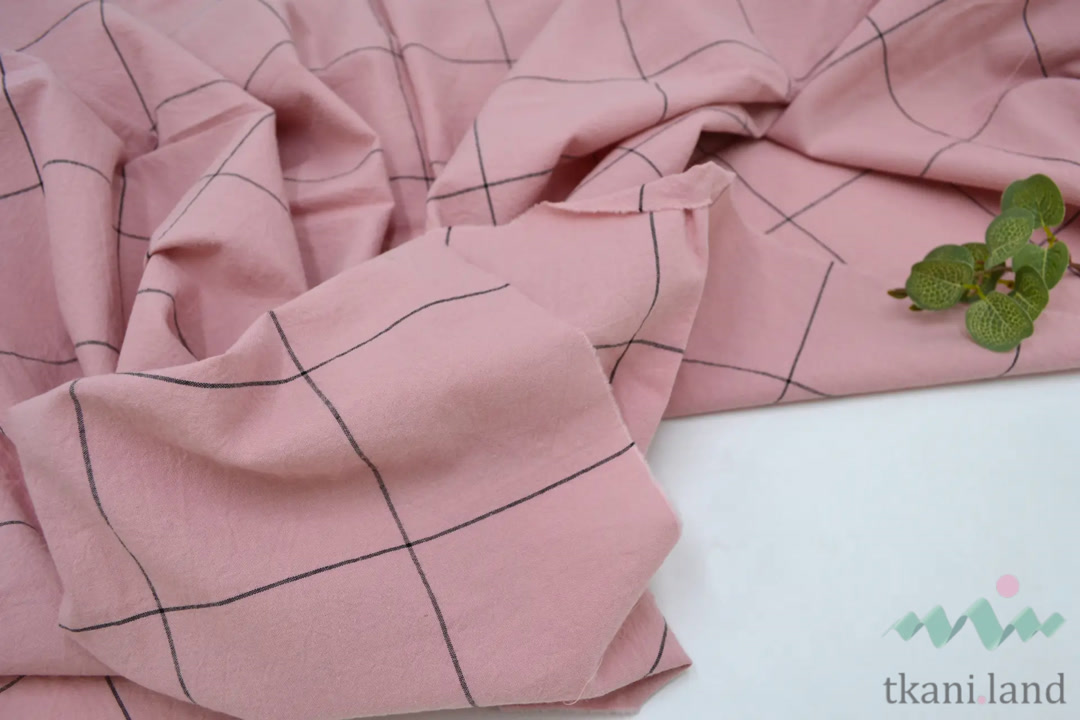 Вареный (стираный) хлопок крупная клетка на нежно-персиковом