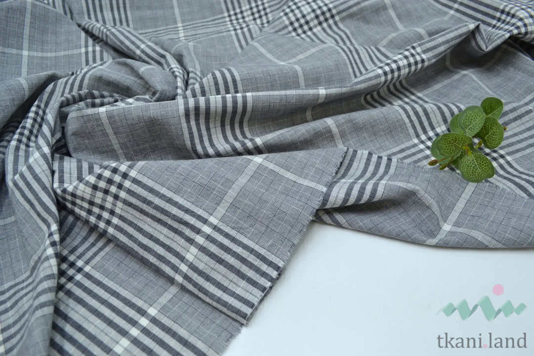 Вареный (стираный) хлопок крупная клетка на Сером с широкими полосами с эффектом крэш