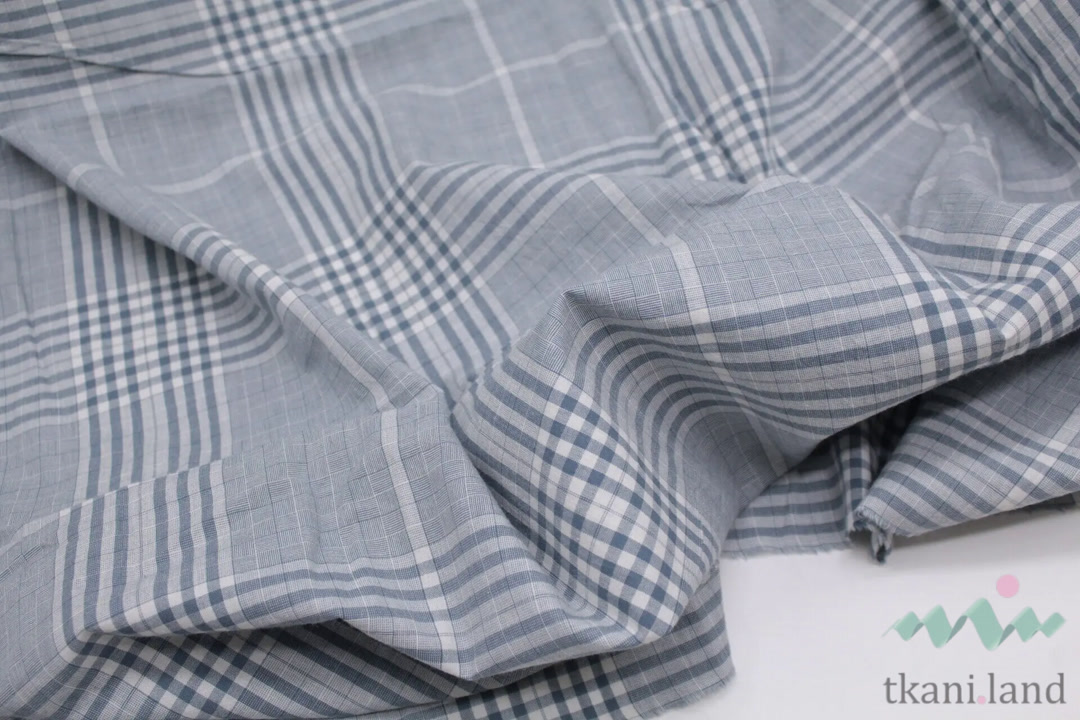 Вареный (стираный) хлопок крупная клетка на Голубом с широкими полосами с эффектом крэш