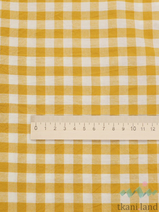 Вареный (стираный) хлопок с эффектом крэш «Мелкая клетка Виши желтая»