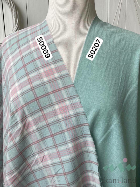Вареный (стираный) хлопок с эффектом крэш «Мятно-розовая клетка»