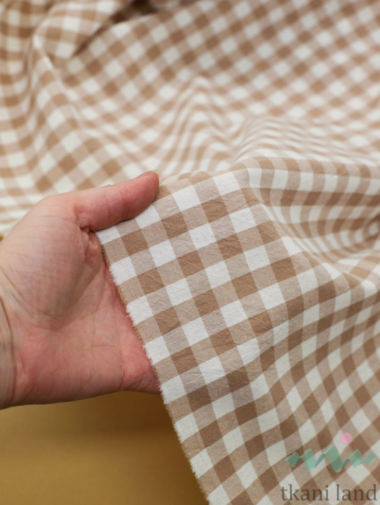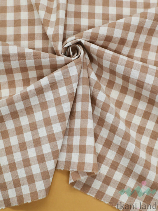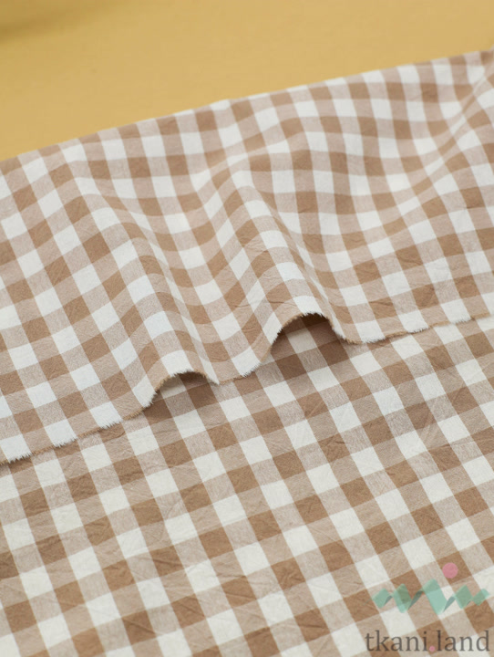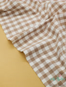 Вареный (стираный) хлопок с эффектом крэш «Мелкая бежевая клетка виши»