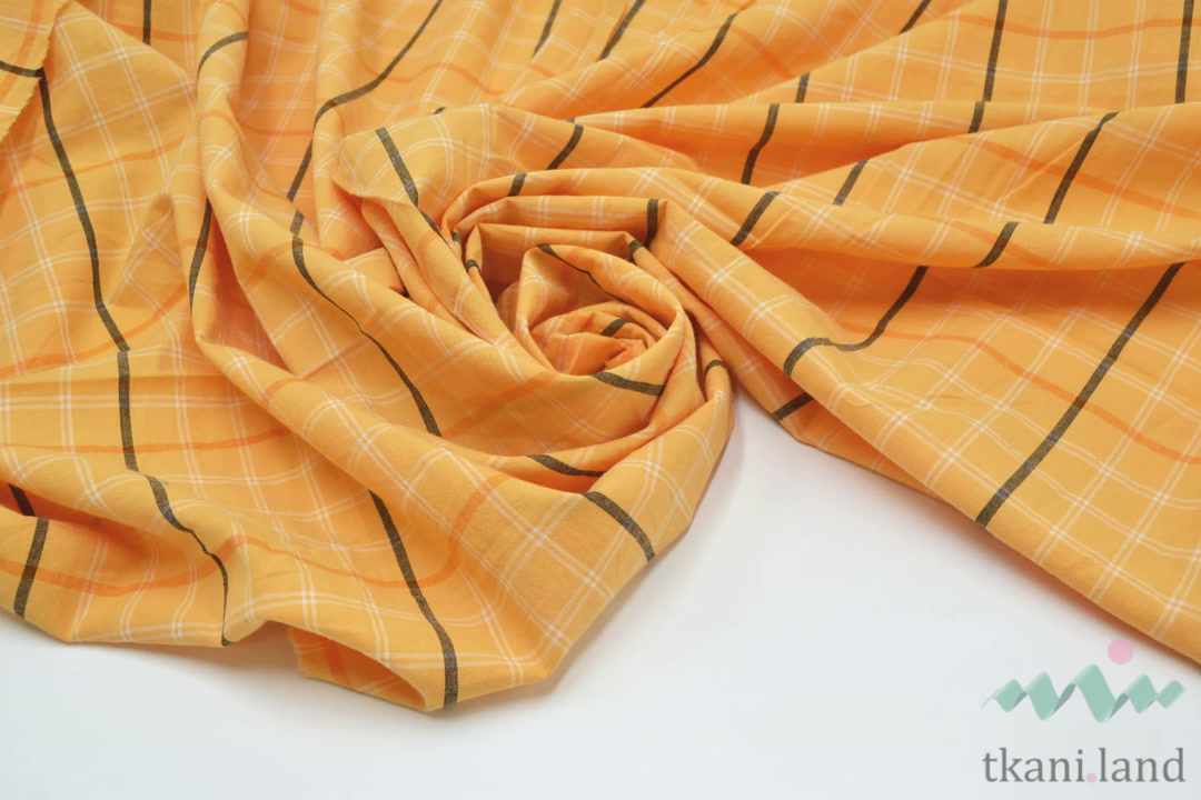 Стираный (вареный) хлопок черно-жёлтая клетка с эффектом крэш