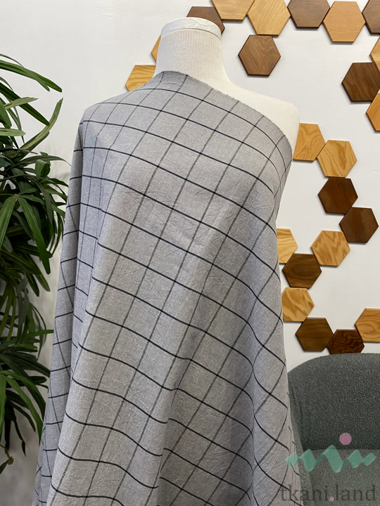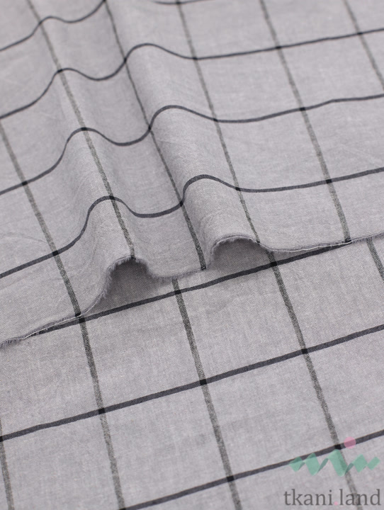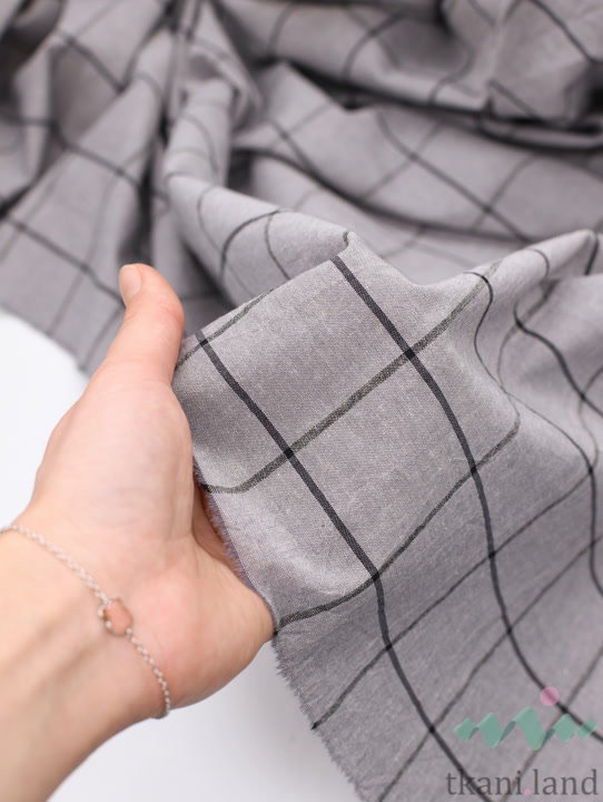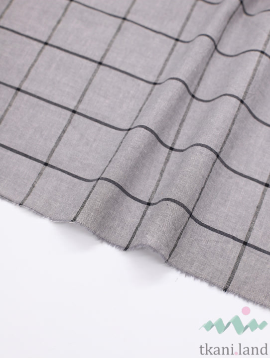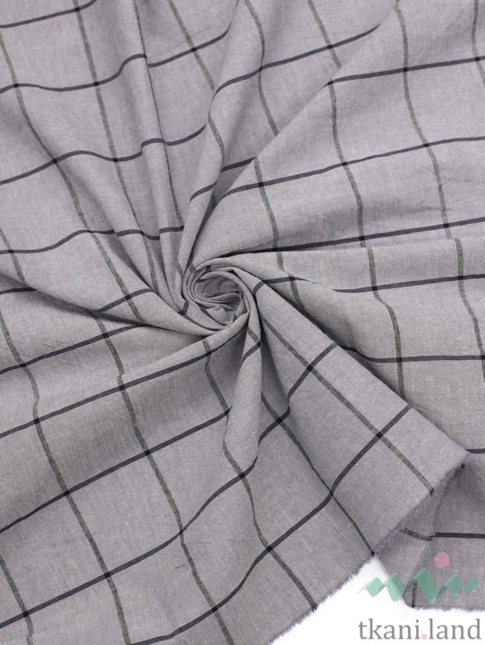 Вареный (стираный) хлопок с эффектом крэш «Крупная клетка серая»
