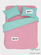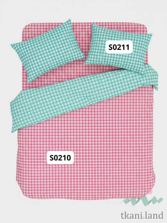 Вареный (стираный) хлопок с эффектом крэш «Мелкая клетка виши (1см) Бирюза»