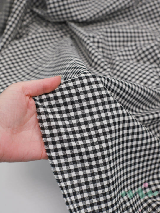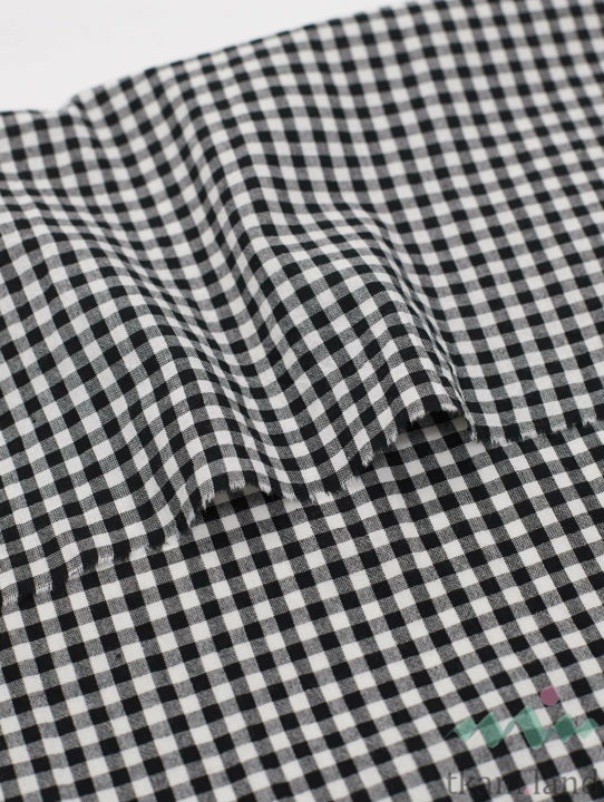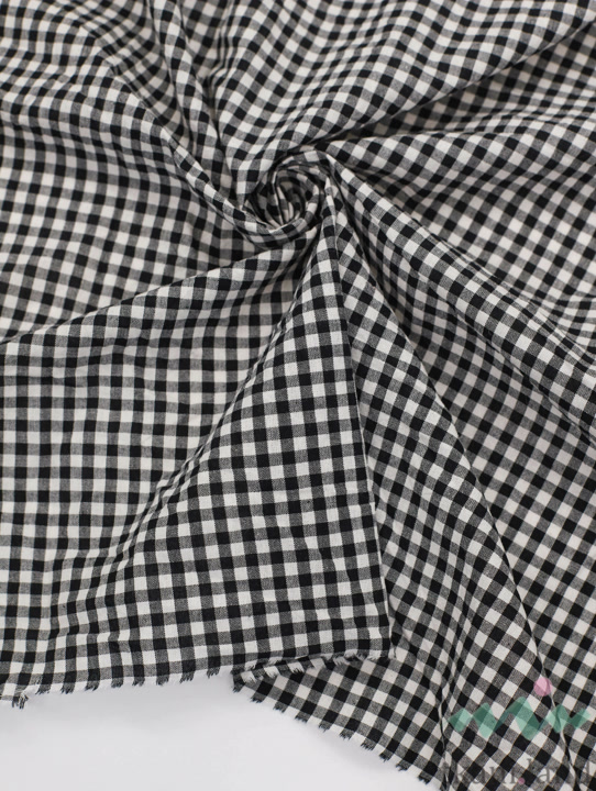 Вареный (стираный) хлопок с эффектом крэш «Мини клетка виши (0,5 см) Черная»